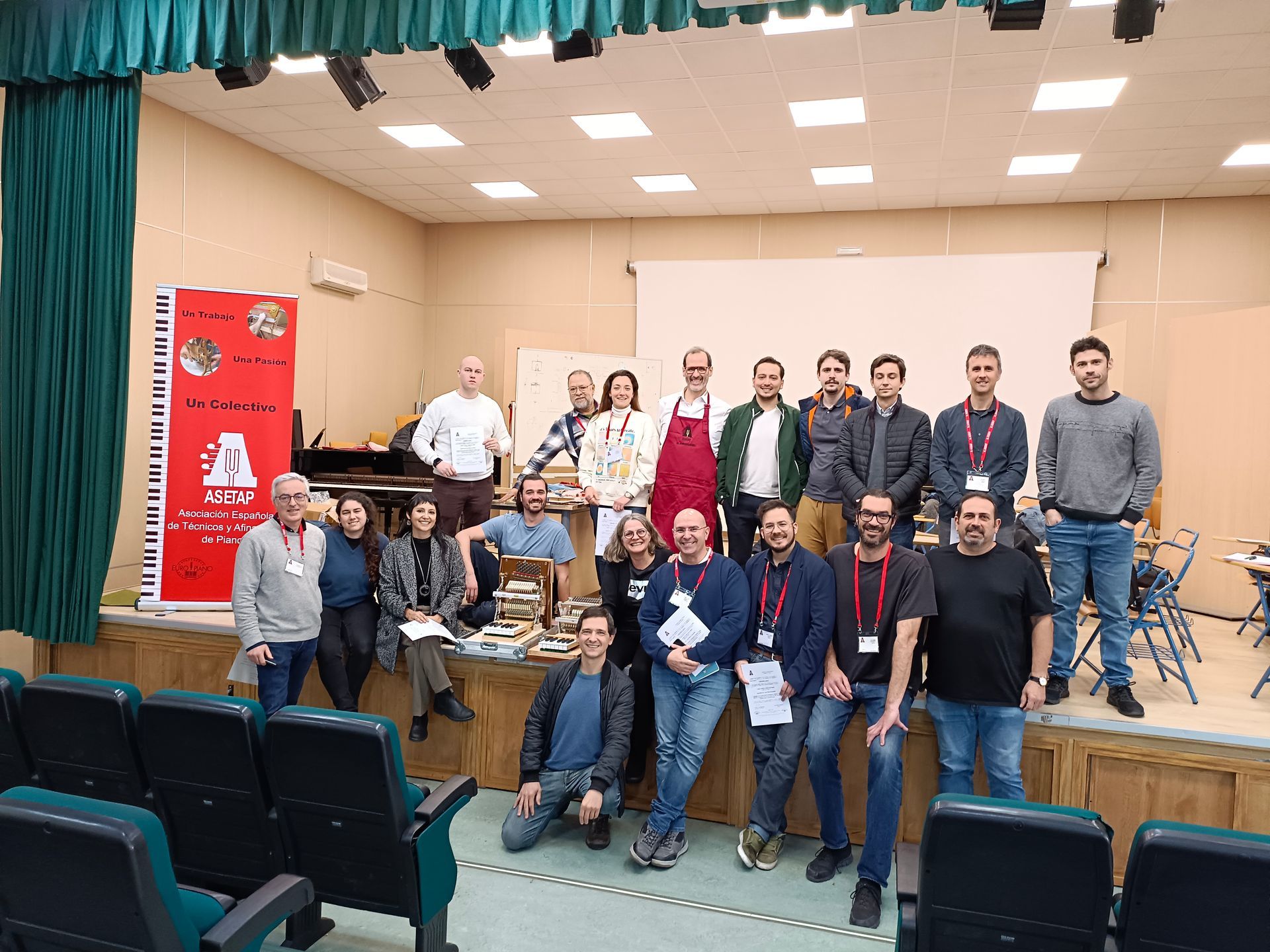 Entre los días 5 y 8 de junio se celebraron en Alcalá de Henares las Jornadas ASETAP 2025. En esta ocasión el tema central fue el cambio de mangos y cabezas de martillo en un piano de cola. Asistieron al curso 25 socios de ASETAP.